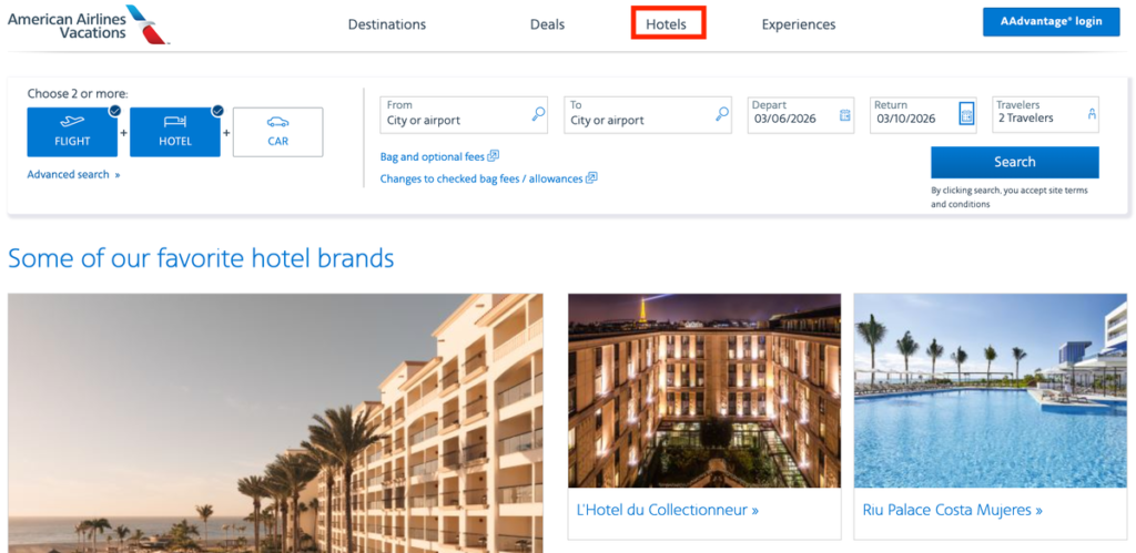 Agents booked directly through the AAvacations agent portal earn 500 AAdvantage® bonus miles per booking. These are not awarded if miles are used to pay for any component.